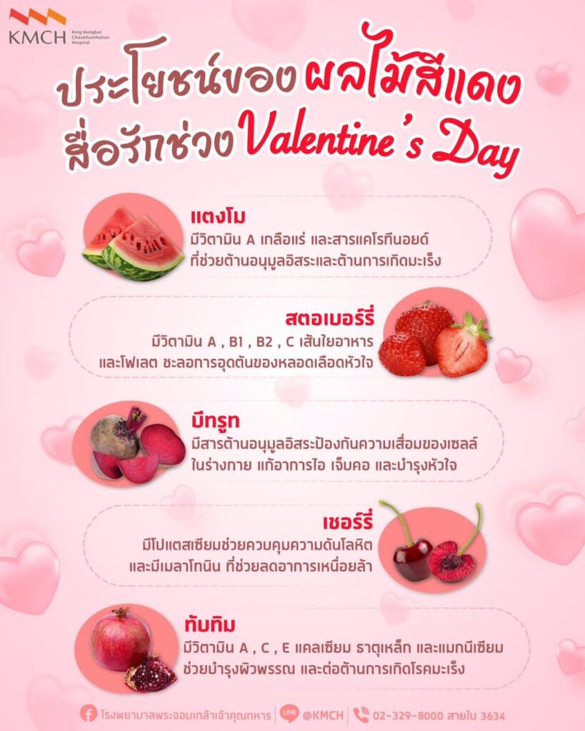 ประโยชน์ของผลไม้สีแดง สื่อรักช่วง Valentine's Day ช่วงวาเลนไทน์แบบนี้ให้อะไรแทนใจดีนะเมื่อพูดถึงวันวาเลนไทน์หรือวันแห่งความรัก ก็ต้องมอบสิ่งของแทนใจให้กับคนที่เรารัก หลายๆ คนก็คงคิดถึงการซื้อดอกไม้สีแดง ช็อกโกแลต หรือตุ๊กตา แต่ทุกคนคงคิดไม่ถึงว่าการให้ผลไม้สีแดง นั้นให้ประโยชน์มากมายแถมสุขภาพที่ดีอีกด้วยนะคะวันนี้คุณหมอมี 5 ผลไม้สีแดงมาแนะนำให้ทุกคนซื้อไปฝากคนที่เรารักกันค่ะ มีอะไรบ้างไปดูดันค่ะ|ด้วยความห่วงใยจาก#จิตวิทยา#โรงพยาบาลพระจอมเกล้าเจ้าคุณทหาร