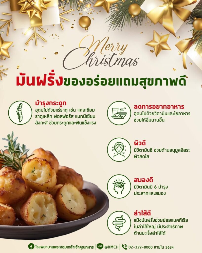 🥔มันฝรั่งบด ถือเป็นอาหารที่ทานคู่กับอาหารจานหลักบนโต๊ะอาหารในช่วงคริสต์มาส แม้จะไม่โดดเด่นบนโต๊ะอาหาร แต่รับรองว่าได้สุขภาพที่ดีแน่นอน ทั้งบำรุงกระดูก ลดการอยากอาหาร ผิวพรรณดี สมองดี และลำไส้ดีแน่นอนค่ะ