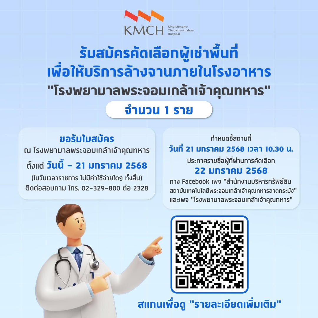 เปิดรับสมัครคัดเลือกผู้เช่าพื้นที่เพื่อให้บริการล้างจาน สำหรับโรงอาหารของโรงพยาบาล จำนวน 1 ราย ✨