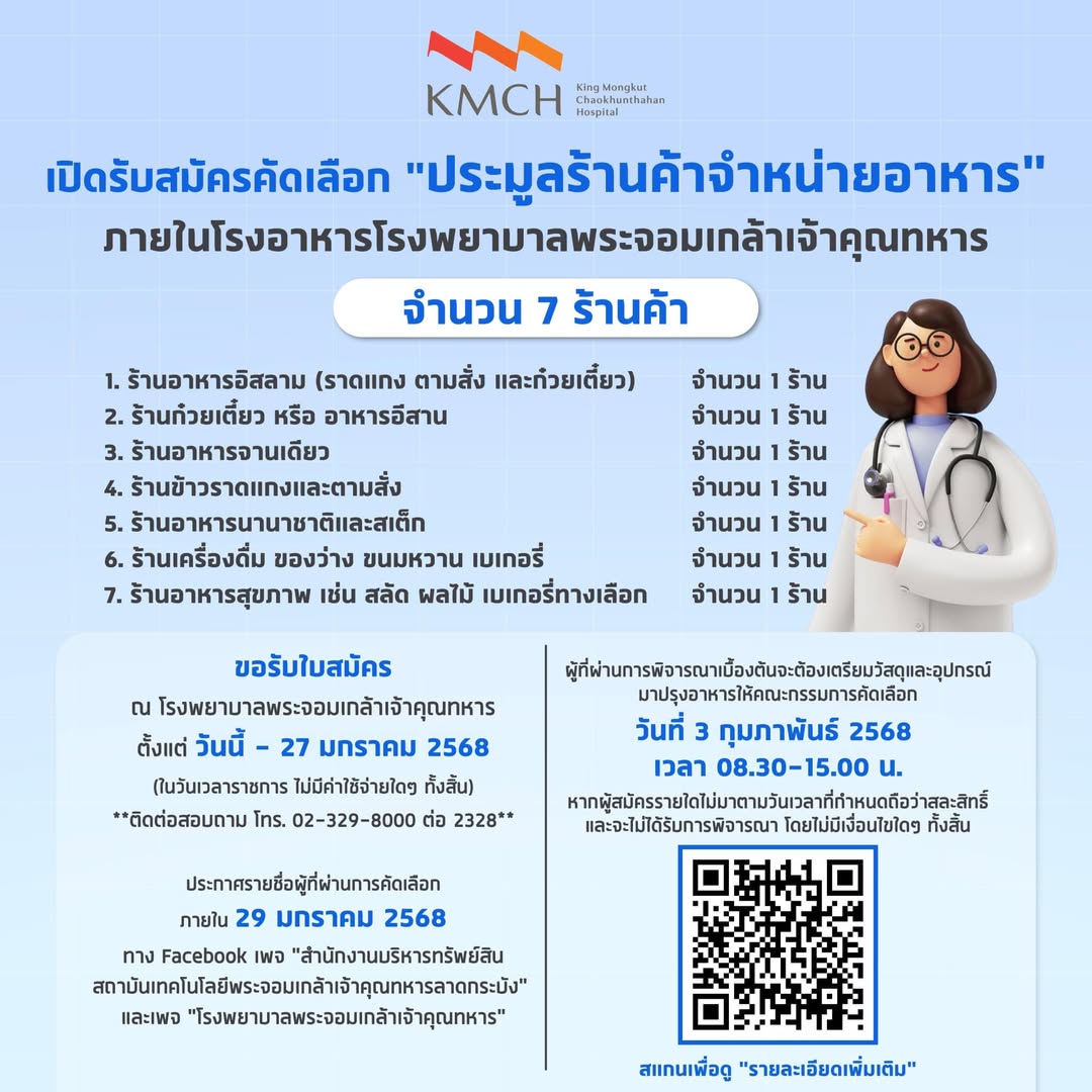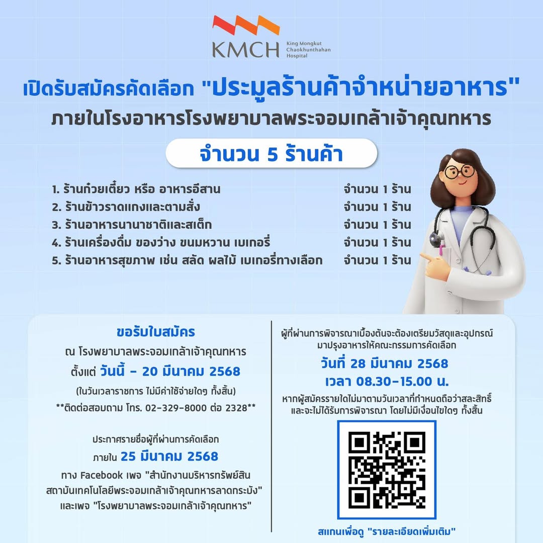 เปิดรับสมัครคัดเลือกประมูลร้านค้าจำหน่ายอาหาร สำหรับโรงอาหารของโรงพยาบาล จำนวน 5 ร้านค้า ✨